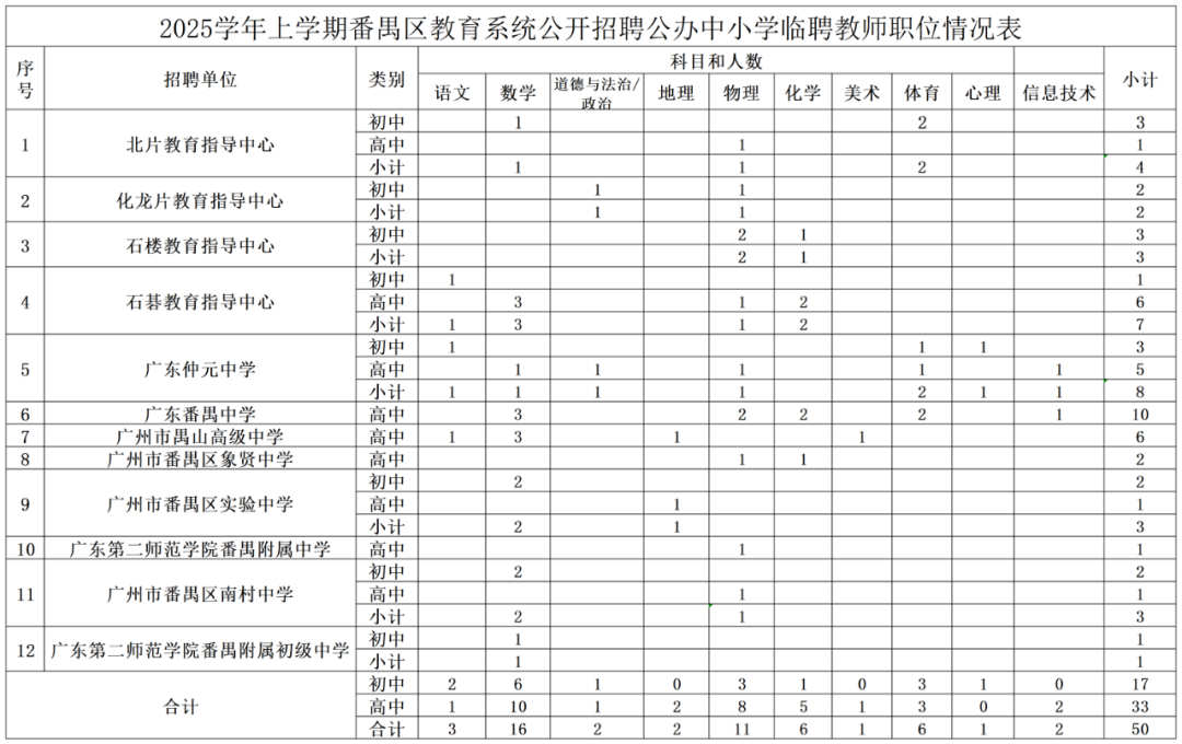 1.2025学年上学期番禺区教育系统公开招聘公办中小学临聘教师职位情况表.xls
